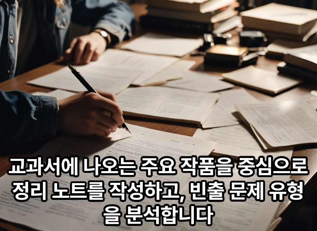 - 문학: 작품의 배경, 주제, 작가의 의도를 파악합니다. 교과서에 나오는 주요 작품을 중심으로 정리 노트를 작성하고, 빈출 문제 유형을 분석합니다.