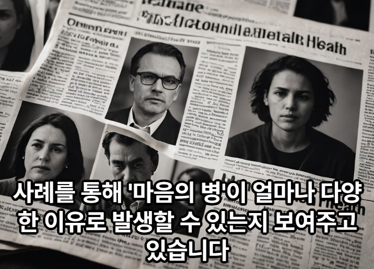 몇 가지 사례를 통해 '마음의 병'이 얼마나 다양한 이유로 발생할 수 있는지 보여주고 있습니다.