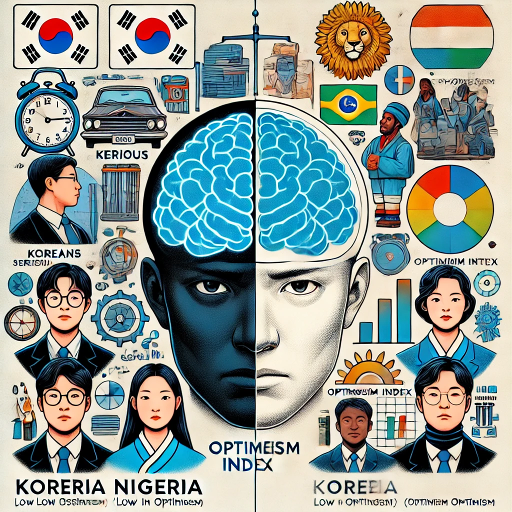 - 낙천성 지수: 나이지리아가 1위, 한국은 76개국 중 최하위.