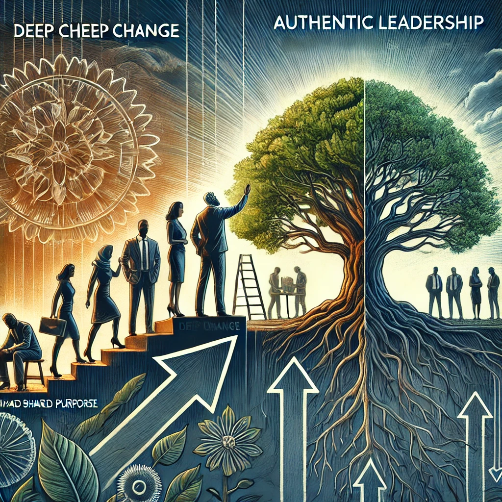 진성리더십은 리더와 구성원이 공유된 목적을 중심으로 협력하여 **근원적 변화(Deep Change)**를 이루는 것을 목표로 합니다. 이는 단순히 단기적 성과를 넘어, 조직과 구성원의 지속 가능한 성장을 도모하는 리더십입니다.
