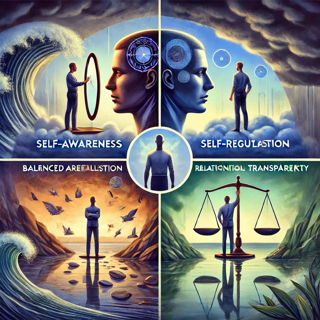 진성리더십은 리더의 내면적 진정성과 외부적 행동의 일치를 강조하며, 다음 네 가지 핵심 요소로 구성됩니다: