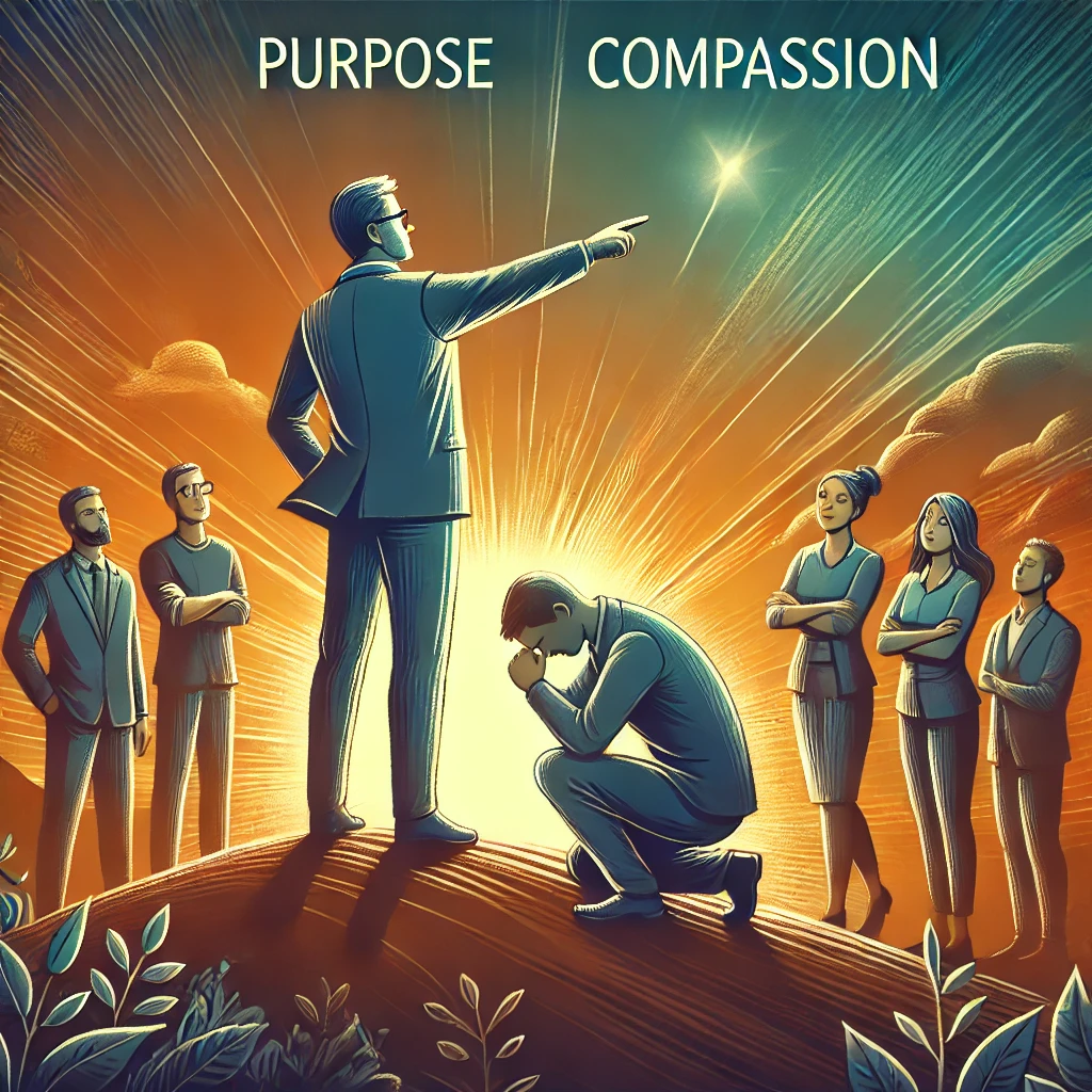 진성리더십은 리더의 **목적(purpose)**과 **긍휼(compassion)**을 중심으로 구성됩니다. 이는 리더가 단순히 목표를 달성하는 것을 넘어, 왜 그 목표를 이루어야 하는지에 대한 명확한 이유를 제시하고, 구성원의 고통을 자신의 고통으로 받아들이며 이를 해결하려는 태도를 포함합니다.