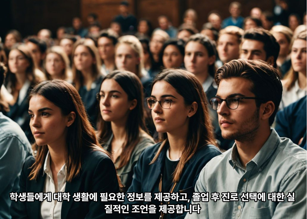 대학 생활 준비를 위해 ‘교실로 찾아가는 대학 새내기 OT’ 프로그램을 운영합니다. 학생들에게 대학 생활에 필요한 정보를 제공하고, 졸업 후 진로 선택에 대한 실질적인 조언을 제공합니다.