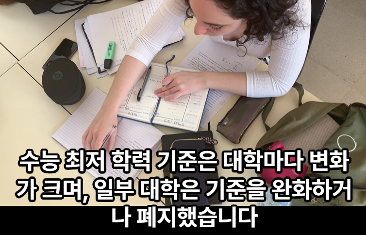 수능 최저 학력 기준은 대학마다 변화가 크며, 일부 대학은 기준을 완화하거나 폐지했습니다.