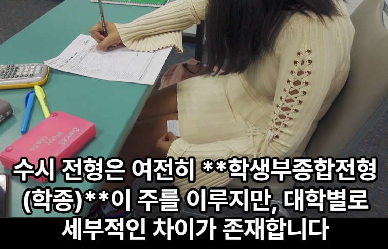 수시 전형은 여전히 **학생부종합전형(학종)**이 주를 이루지만, 대학별로 세부적인 차이가 존재합니다.