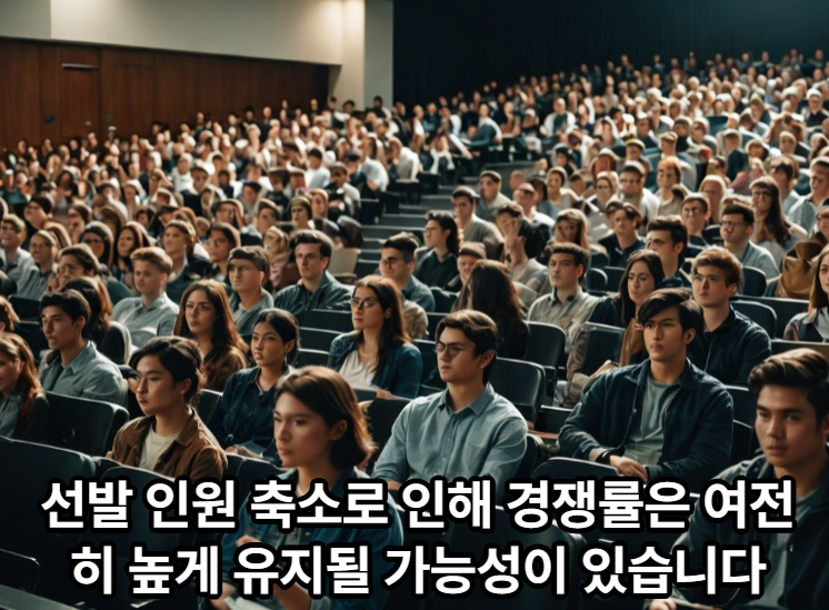 - 전체 모집 정원 감소: 전년 대비 약 12% 감소한 3711명으로, 이는 498명이 줄어든 수치입니다.