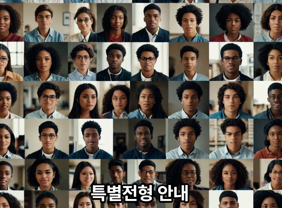 - 기회균형특별전형: 사회통합, 농어촌, 저소득층, 특수교육 대상자, 북한이탈주민 등을 대상으로 함.