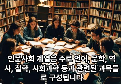 인문사회 계열은 주로 언어, 문학, 역사, 철학, 사회과학 등과 관련된 과목들로 구성됩니다. 이 계열은 인문학적 소양과 사회적 이해를 바탕으로 한 진로를 희망하는 학생들에게 적합합니다.