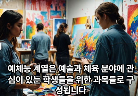 예체능 계열은 예술과 체육 분야에 관심이 있는 학생들을 위한 과목들로 구성됩니다. 창의적 표현과 신체적 역량을 개발하는 데 중점을 둡니다.